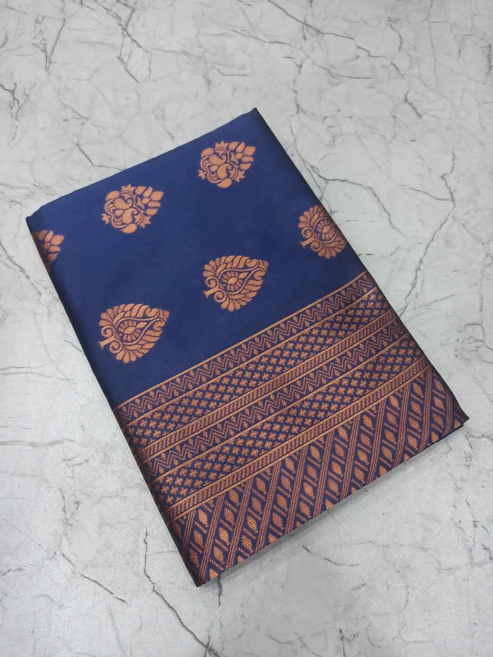 Name : MF 1940 BLUE SOFT LICHI SILK SAREE