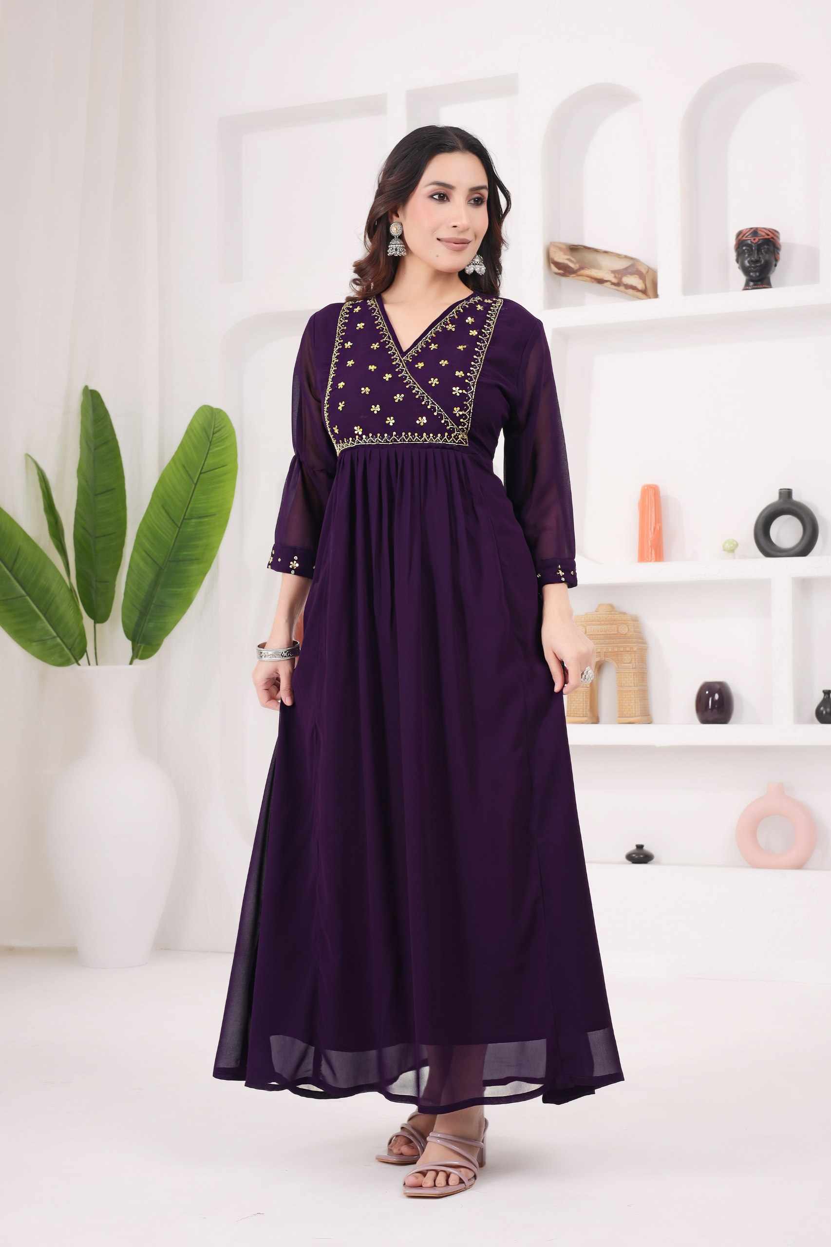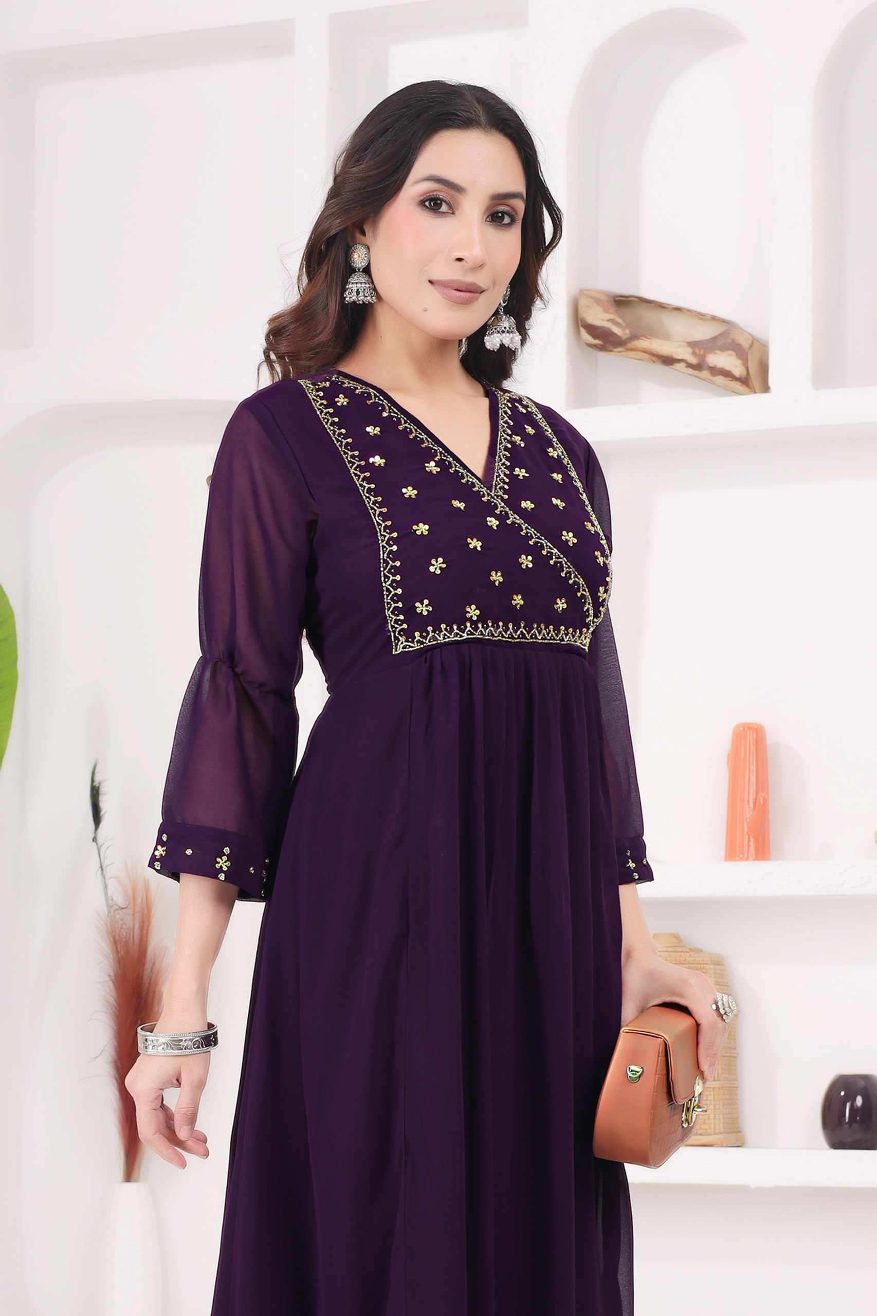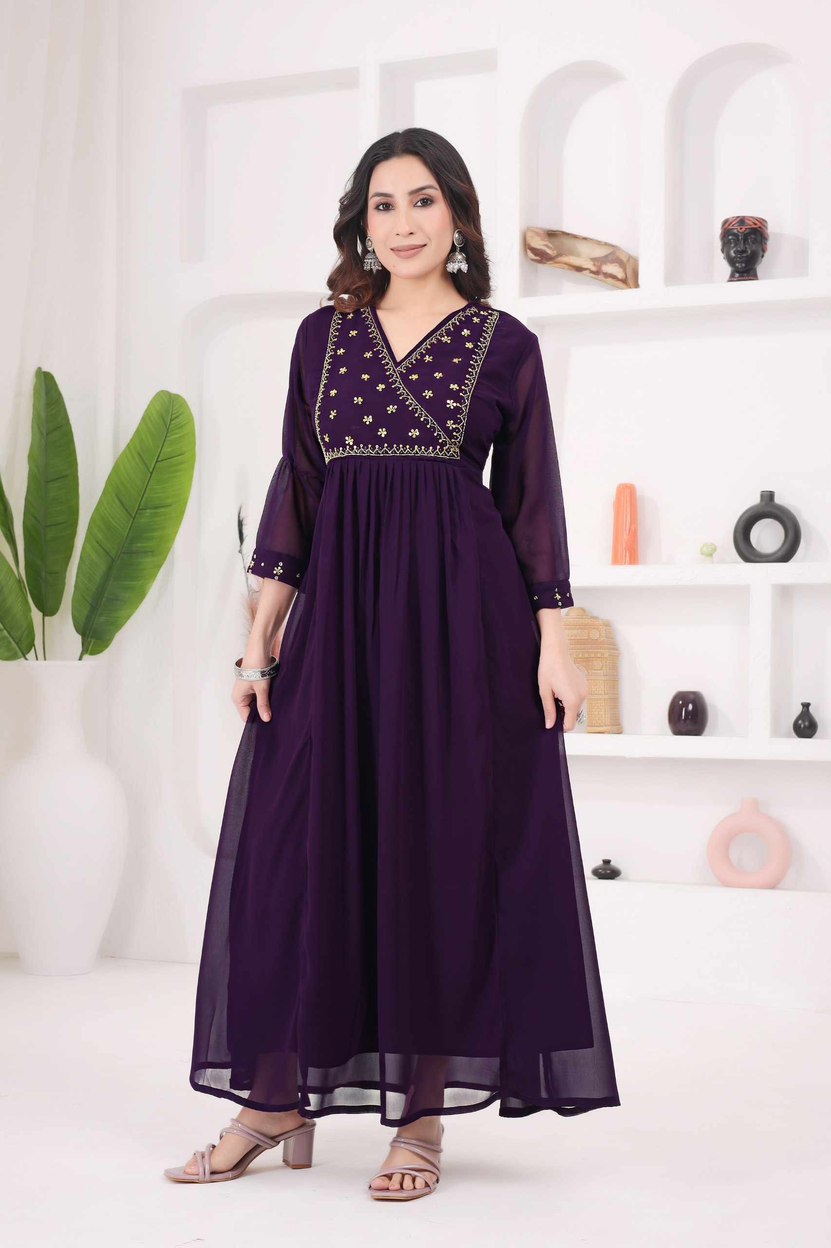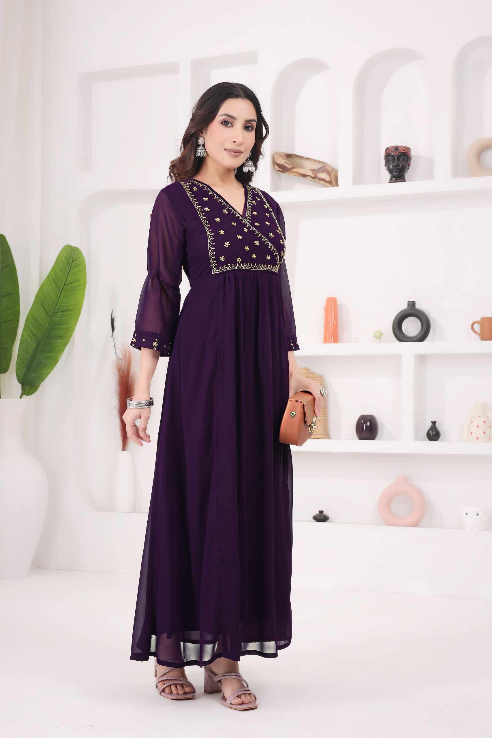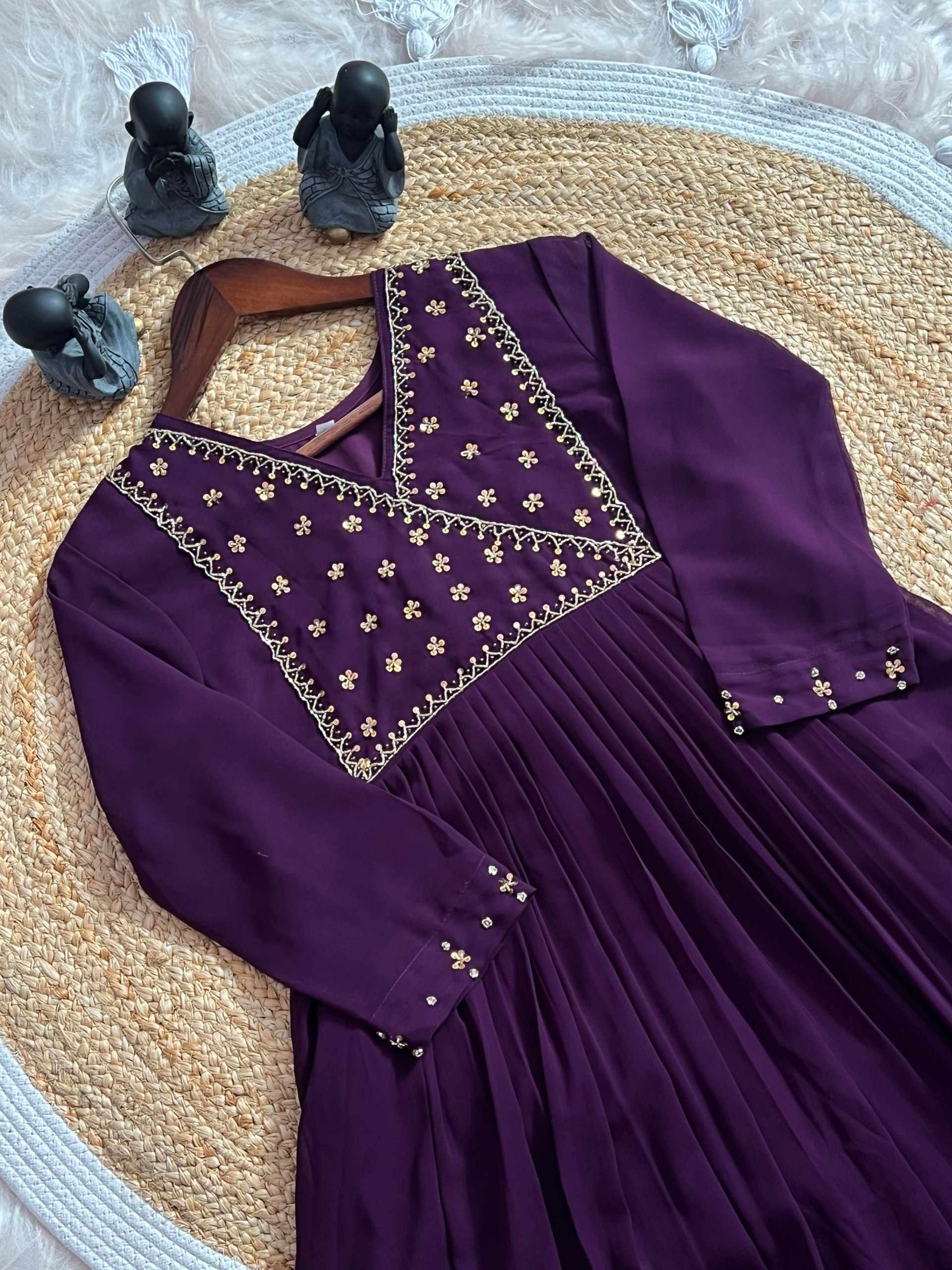 Home / WM12 WINE BLOOMING GEORGETTE BEAUTIFUL HANDWORK KURTI